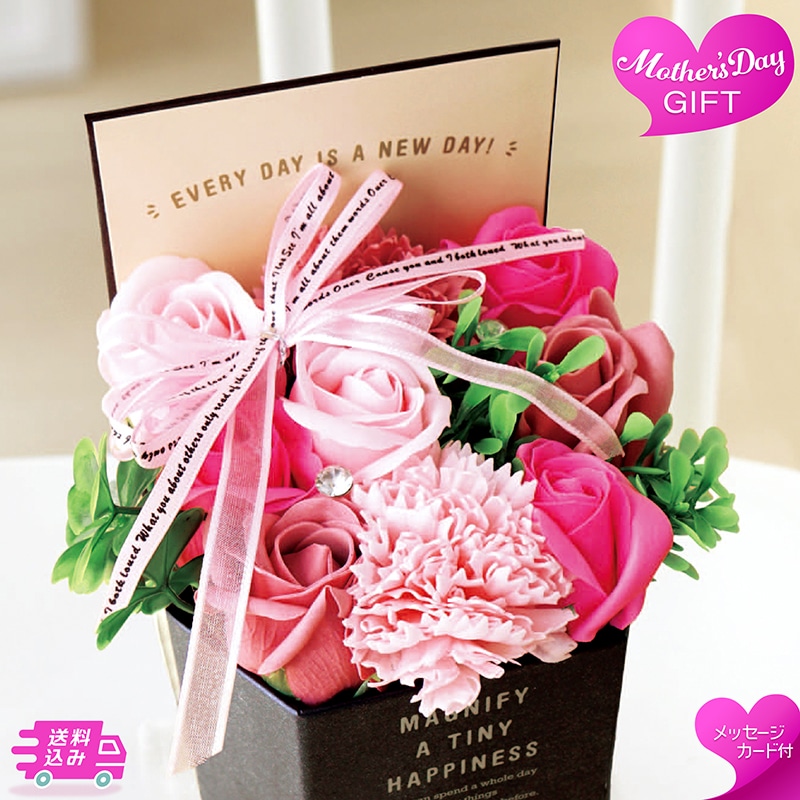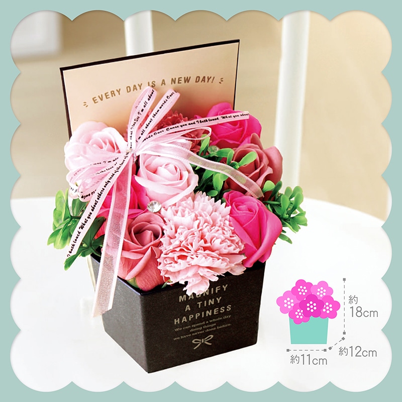 - シャボンフラワー(バラ×7・カーネーション×2)/造花/ピック/紙製BOX/お手入れのしおり