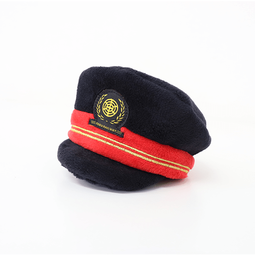 エコバッグが駅長さんの帽子風ぬいぐるみに収納されている、可愛らしいエコバッグです。