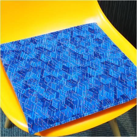 このクッションには、東武鉄道の座席シート生地が使われています。
