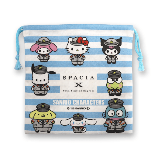 「スペーシア X」が通りすぎる様子を描いた巾着袋です。