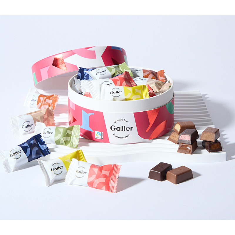 内容量:ミルクバナナ、ミルクピスタチオ、ミルクプラリネ、ミルクポッピングプラリネ、ダークストロベリー、ダークキャラメル 各5個