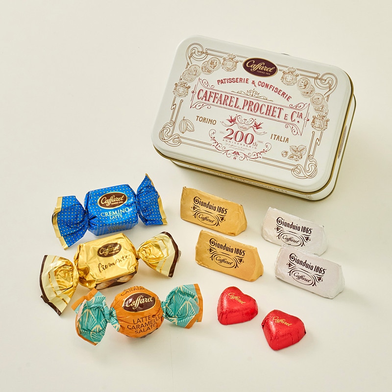 内容量:ジャンドゥーヤ×2粒、ジャンドゥーヤビター×2粒、クレミノチューブ×1粒、ソルテッドキャラメル×1粒、ピエモンテ×1粒、ミニハート×2粒