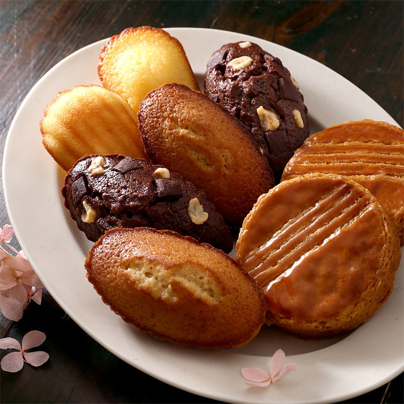 内容量:●ガレット・ブルトンヌ 2個、●フィナンシェ<ショコラ・ノワゼット>2個、●フィナンシェ2個、●マドレーヌ2個