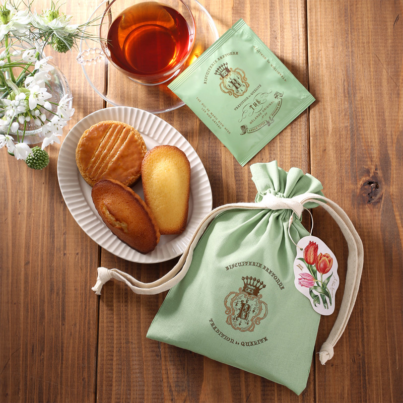 - 内容量:●フィナンシェ 1個、●マドレーヌ 1個、●ガレット・ブルトンヌ 1個、●ブルトンヌ オリジナルブレンド紅茶<No.01 ASSAM,RUHUNA> 2袋
