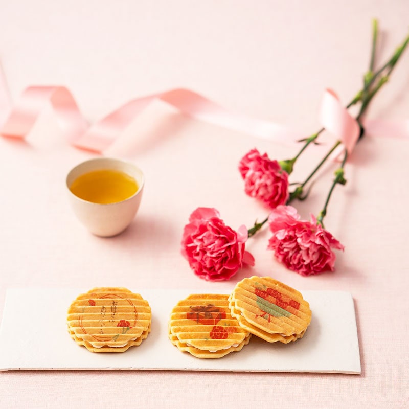 母の日限定プレミアム千寿せんべいと白桃餡入りお饅頭の詰合せです。