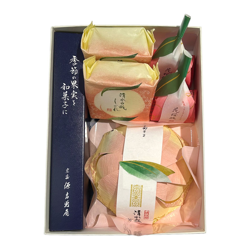 内容量:清水白桃しぐれ×2、花桜桃×2、清水白桃ぜりぃ×1