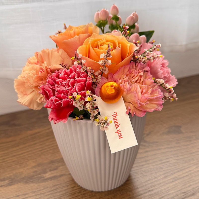 商品内容:バスケット付きそのまま飾れる生花アレンジメント