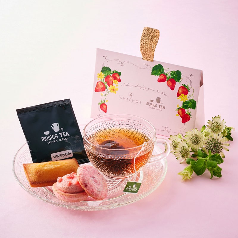 内容量:苺のクリームサンド1個、フィナンシェ1個、紅茶ティーバッグ1個