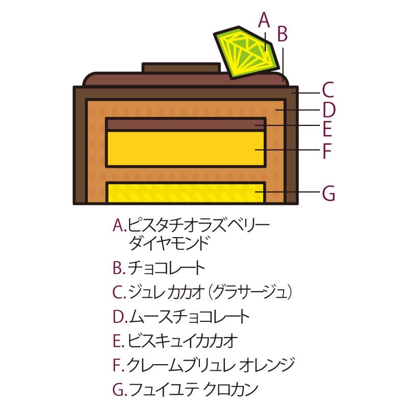 カリブ海の最高級カカオ豆を使用したチョコレートを濃厚でビターなチョコムースに仕上げました。オレンジのクレームブリュレとカカオのビスキュイがハーモニーを奏でます。