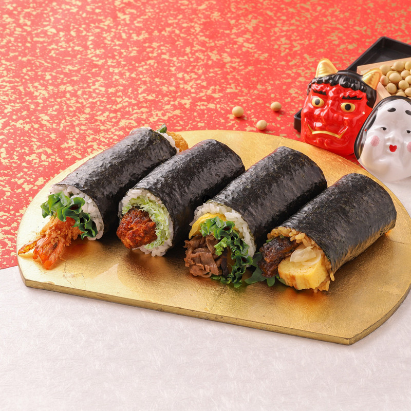 具材:うなぎ恵方巻、国産牛しぐれ恵方巻、海老フライ恵方巻、味噌ヒレカツ恵方巻