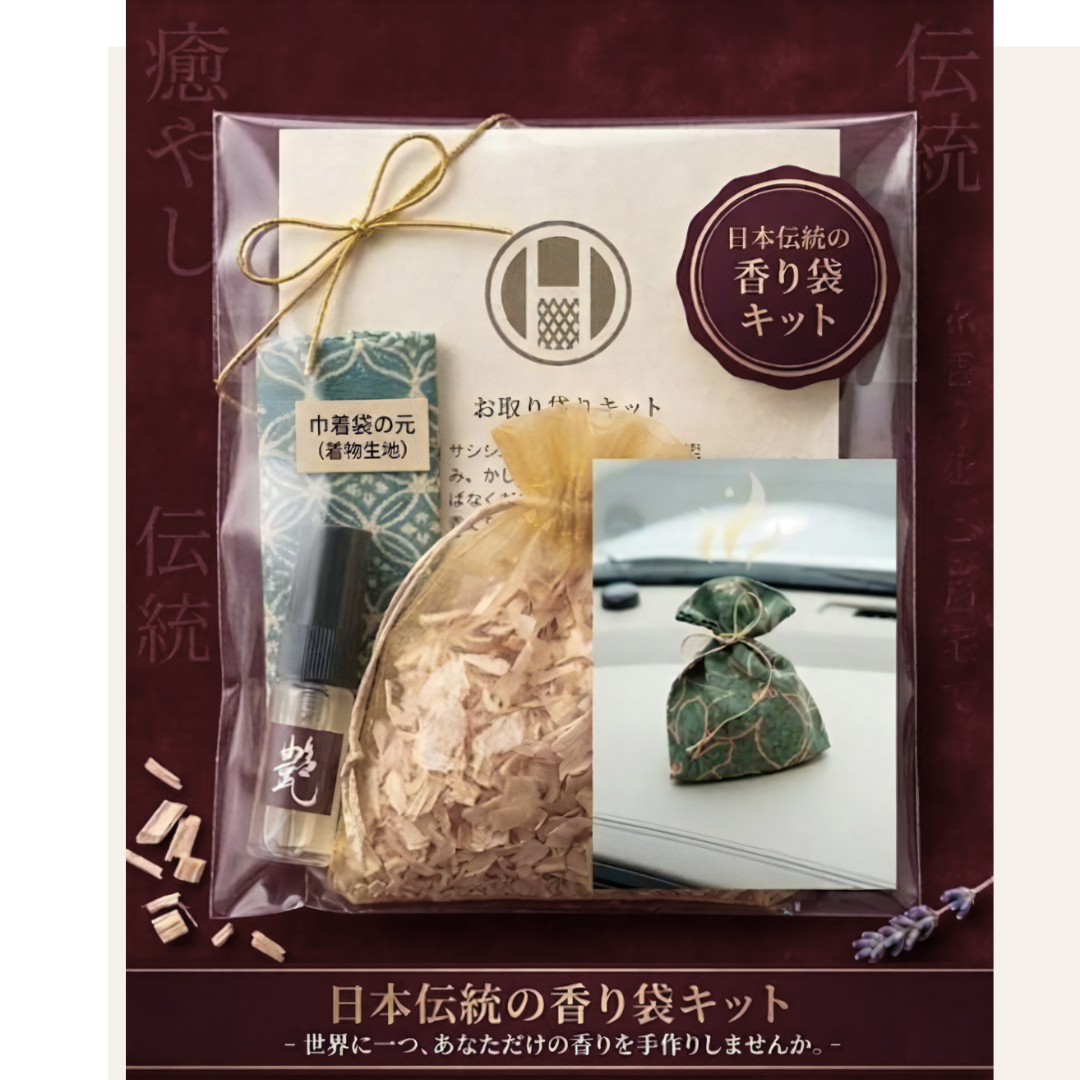 - 木くずに香りを含ませ、巾着に包むことで完成する体験型仕様