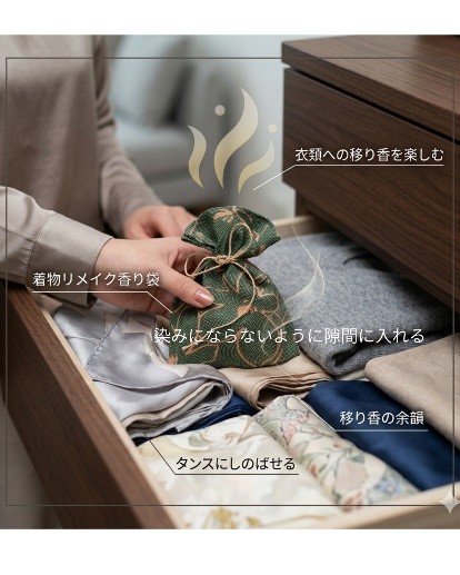 - スプレー 2ml+木くずサシェ+着物リメイク巾着+野州麻紐