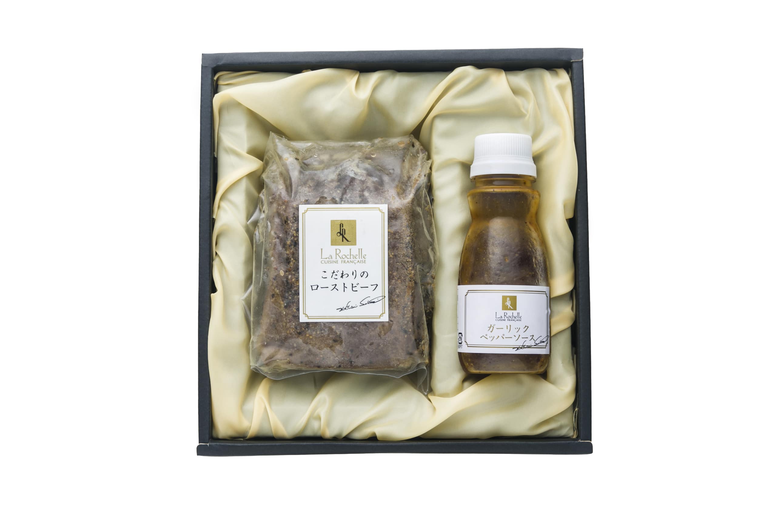 - ローストビーフ350g、特製ガーリックペッパーソース120ml