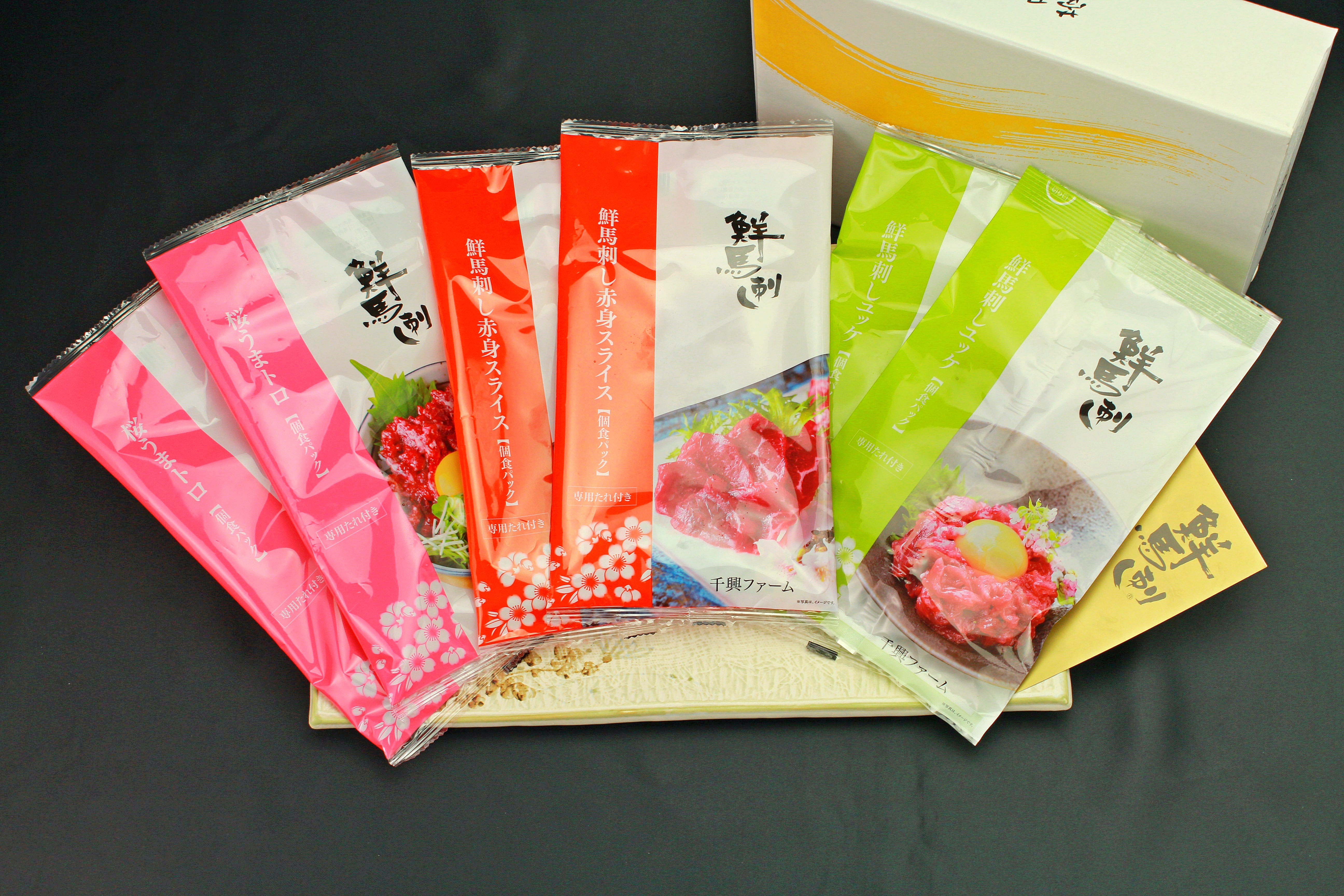 - 桜うまトロ個食パック(75g)・ユッケ個食パック(65g)・赤身スライス個食パック(40g)/各2つ 計360g、赤身スライス個食パックのたれ(5ml)×2