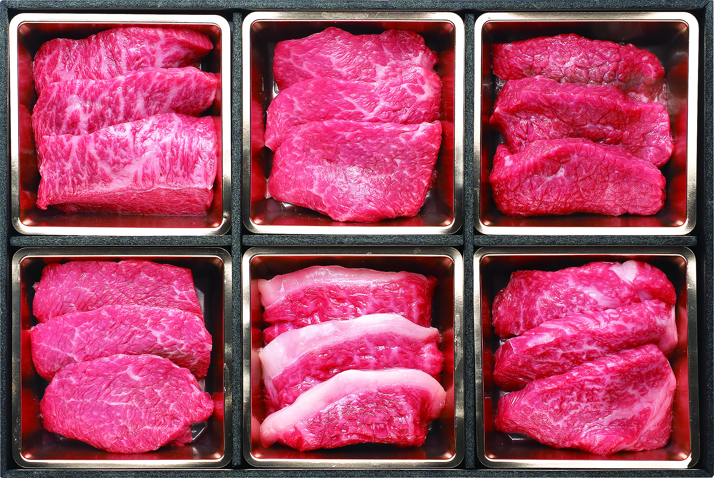 - 松阪牛 カタ肉(ミスジ・ウワミスジ・クリ)・松阪牛 モモ肉(ランプ・イチボ・マルシン)/各180g、神戸牛 カタ肉(ミスジ・ウワミスジ・クリ)・神戸牛 モモ肉(ランプ・イチボ・マルシン)/各180g