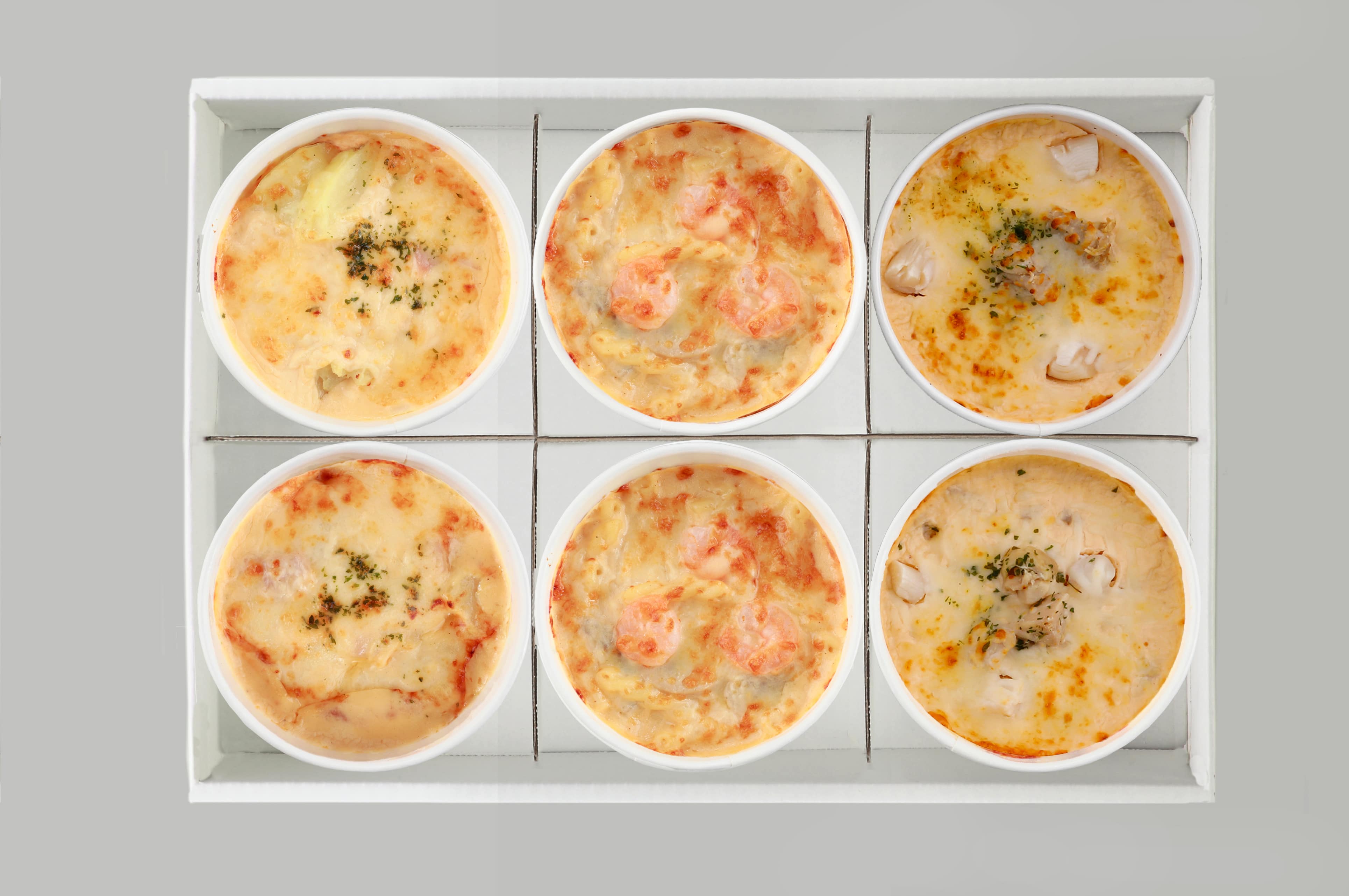 - シュリンプマカロニグラタン(120g)・ポテトグラタン(135g)・チキンドリア(135g)/各2個