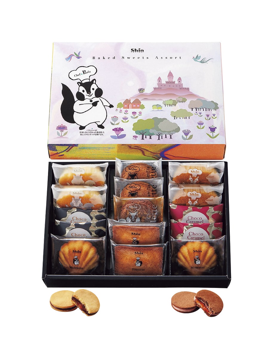 - シンマドレーヌ・シンフィナンシェ・スフレフロマージュ・スフレキャラメル×各2、ガレット(バニラ×2・チョコ)、チョコキャラメルサンド(プレーン・ストロベリー)×各2