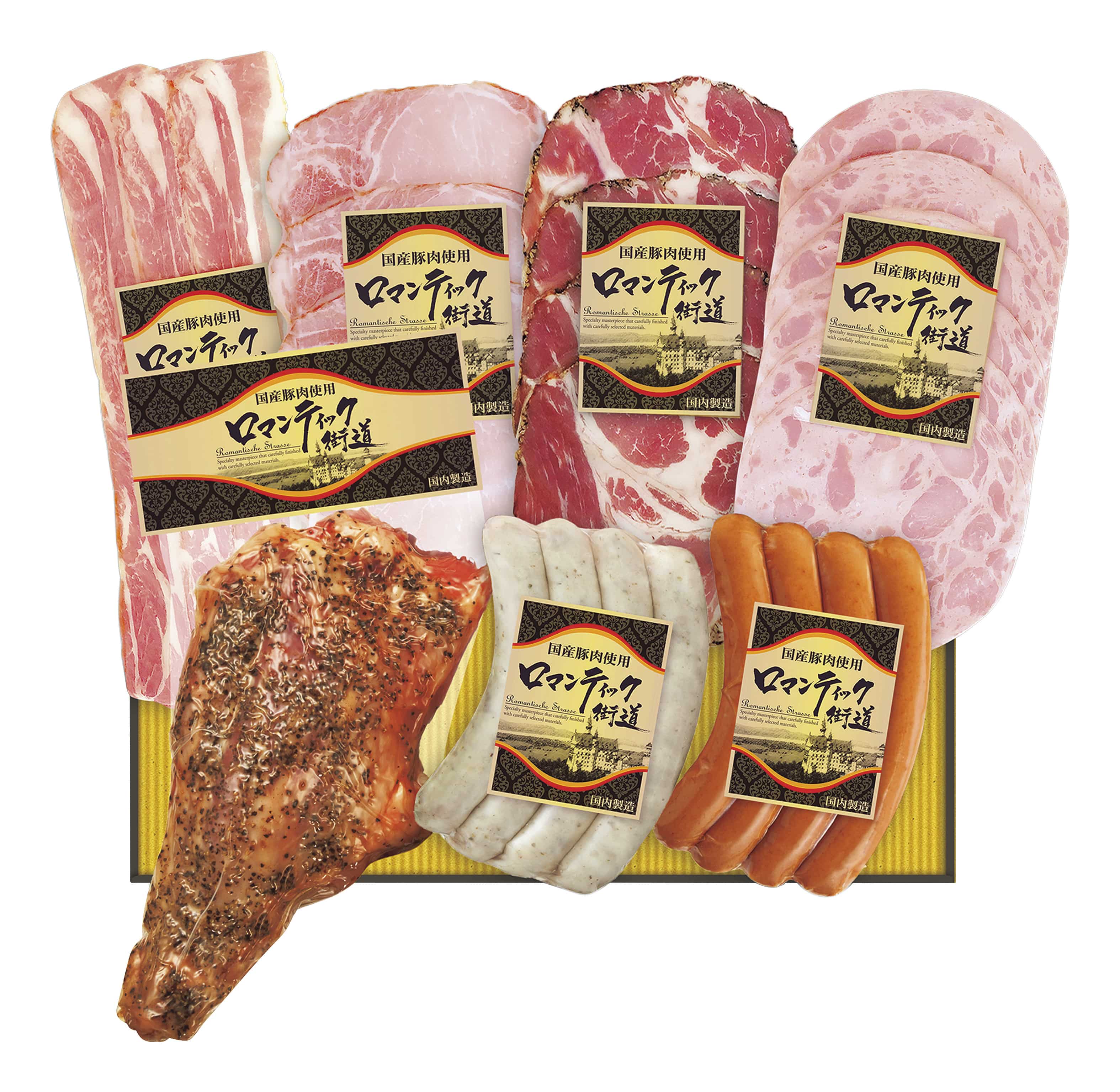 - 熟成ベーコン56g、熟成ロースハム54g、ペッパーシンケン46g、ワイルドポーク220g、ビアシンケン78g、ヴィエナヴルスト・ブラ―トヴルスト/各100g