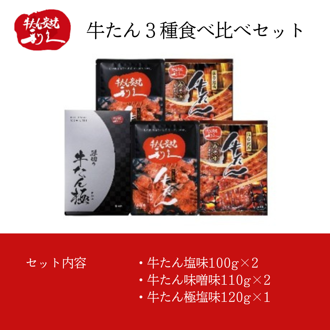 - 牛たん塩味100g×2、牛たんみそ味110g×2、牛たん極塩味120g×1