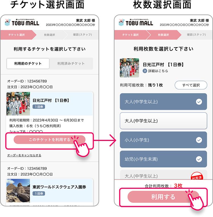 マイページから利用するチケットと