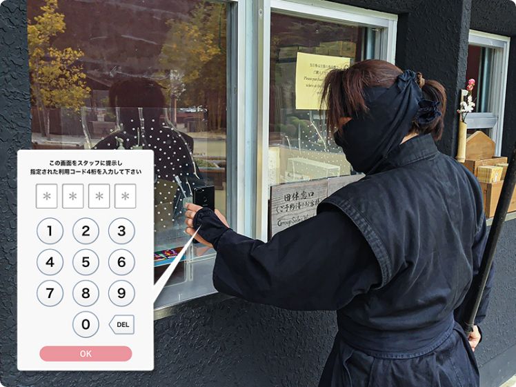 利用コード画面をスタッフに提示し、