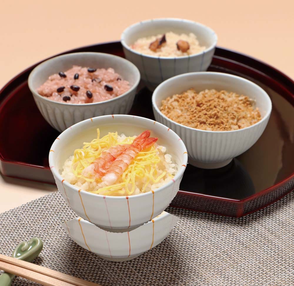 - ちりめんごはん・鶏そぼろごはん・たこめし・ちらし寿司・赤飯・十六穀米(さつま芋)各90g×各2