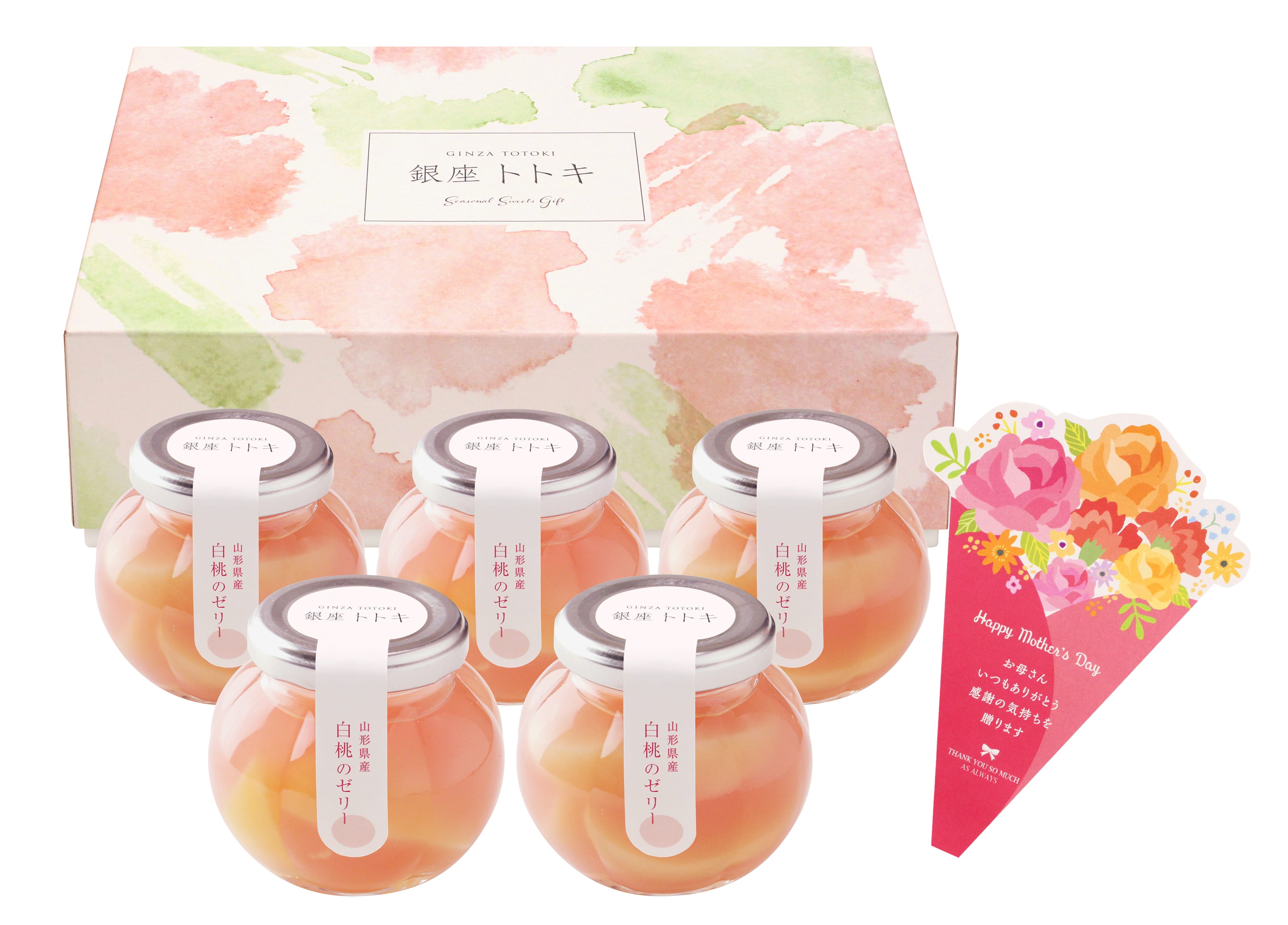 - 白桃のゼリー 146g×5 ※メッセージブーケ付