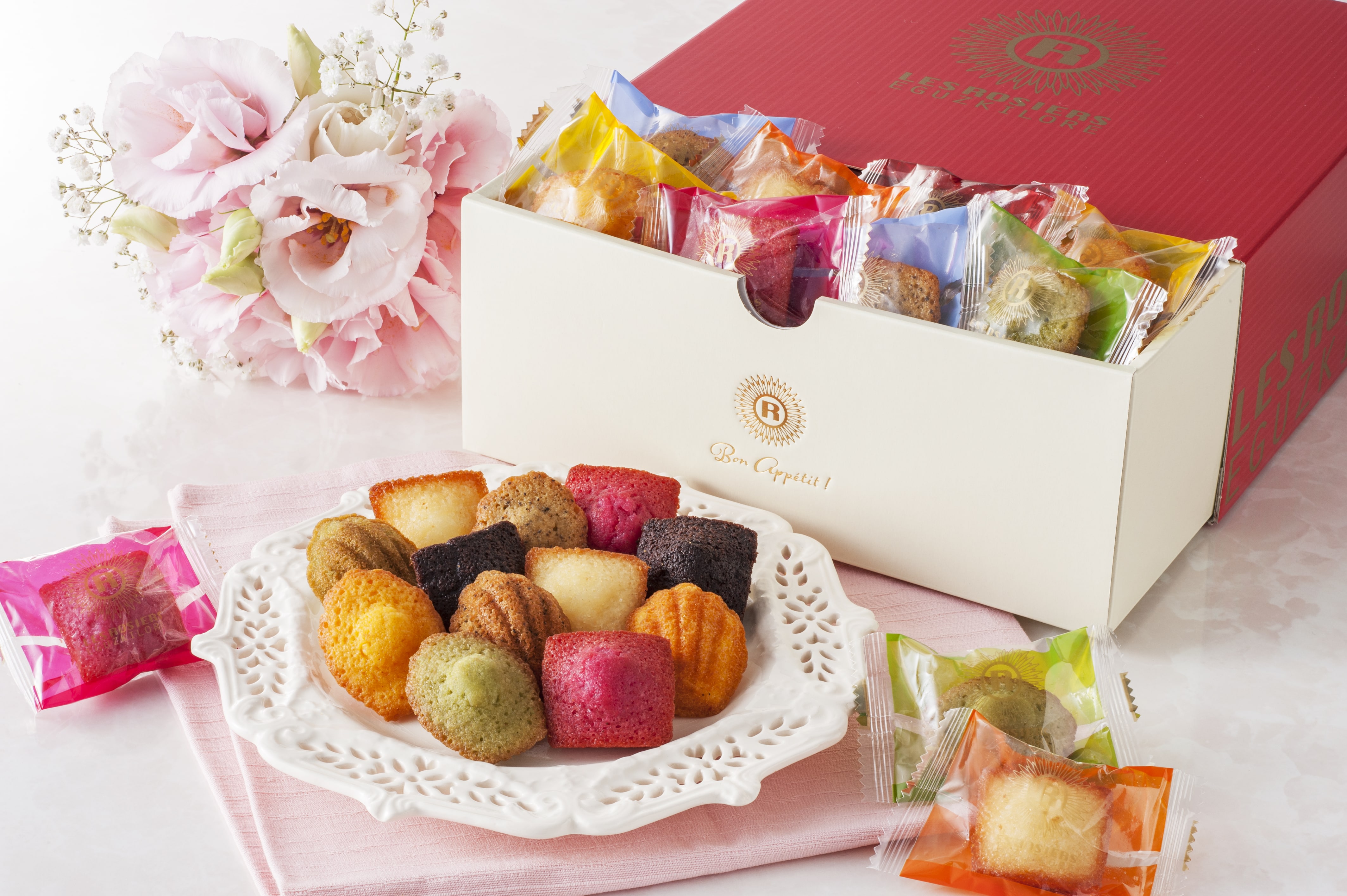 - フィナンシェ(プレーン・ショコラ・フランボワーズ)×各7、マドレーヌ(ピスタチオ・アールグレイ・マンゴー)×各7(計42)